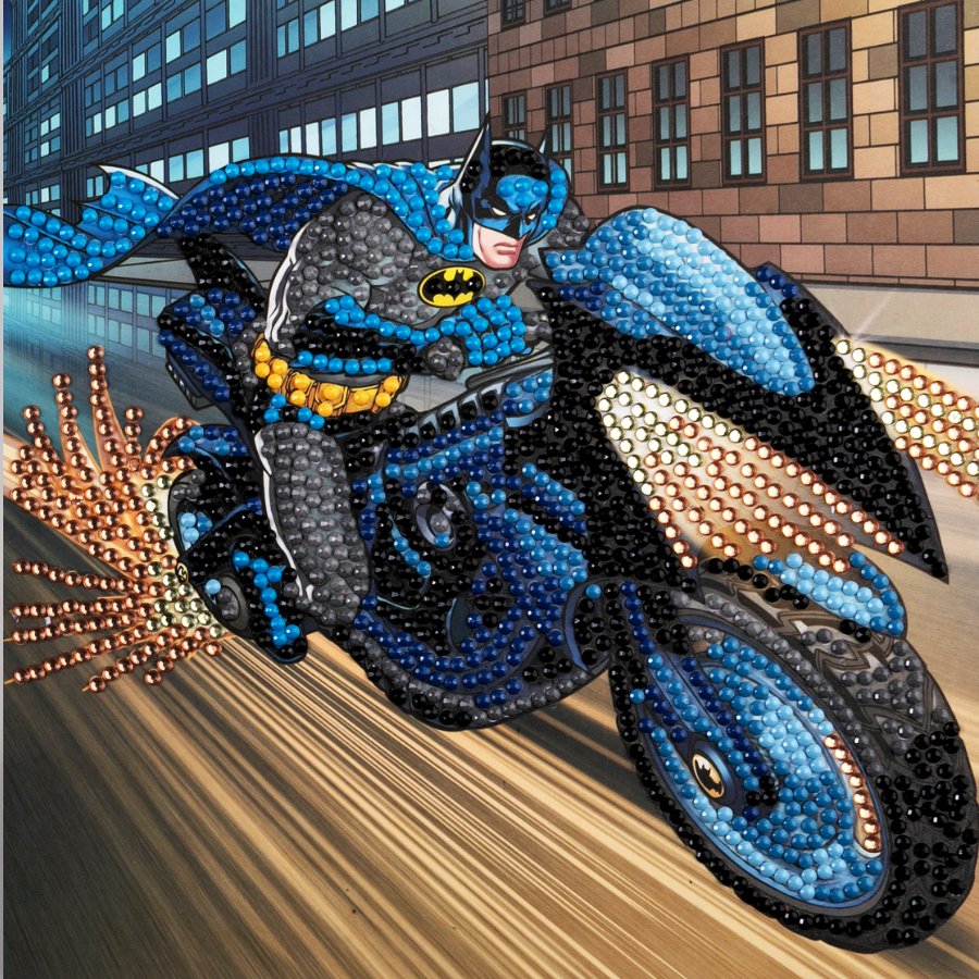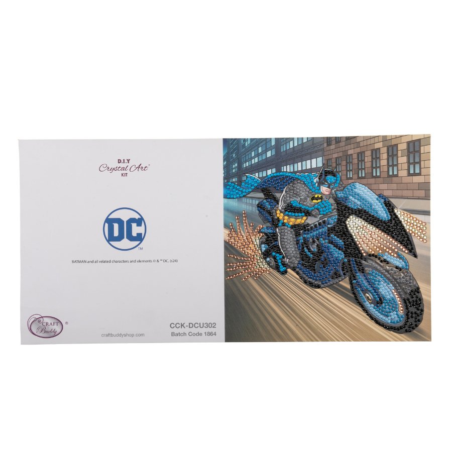 Introducing the 'Batman' Crystal Art® Card Kit that brings to life the legendary Dark Knight as he races into action. Officially licensed by DC, this Batman DC Crystal Art® Card is an exceptional craft for enthusiasts and fans of the one of the most iconic superheroes all time, presenting a dazzling gift suitable for any occasions!