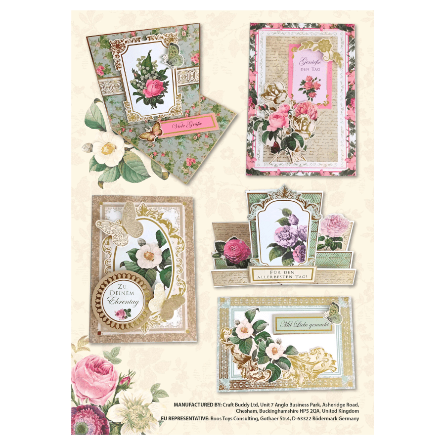 Inside the Eleganza Papercrafting Kit from Craft Buddy, you'll find a delightful assortment of printed, die cut and foiled finishes making your cards extra special and unique. The kit comes with a variety of printed card, sentiments, toppers and embellishments. Collated with versatility in mind, this kit can be used in various projects; so simply let your imagination run wild with the endless possibilities that comes with paper crafting. The kit was specially designed for a floral and vintage aesthetic, bringing a touch of glamour and elegance to your makes.