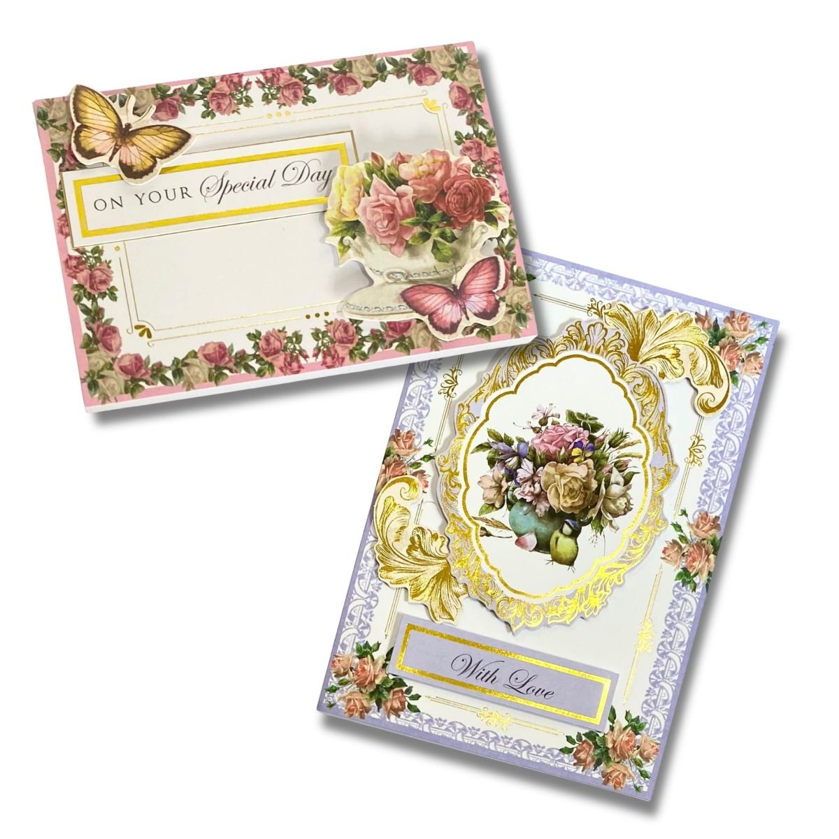 - 2 x A4 Die cut and foiled floral and butterfly Embellishments (1 design x 2 of each) 250gsm