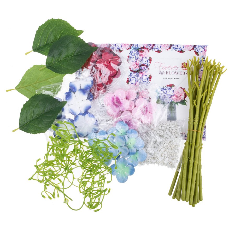 This stunning collection of Hydrangea stems from Forever Flowerz gives you the materials to create 16 beautiful full bloom stems across 4 stunning summer colours. Compact and ‘showy’ they are usually grown for their amazing petal clusters that produce colour through the Summer. In this kit, each multi-headed flower stem holds 9 flowers, and each stem creates a large bloom using 5 of the multi heads connectors (your set will make 4 stems in each colour). Coming in 4 lovely colours - dark fuchsia pink, light pink, blue/green and blue/white, the design and display options are endless.