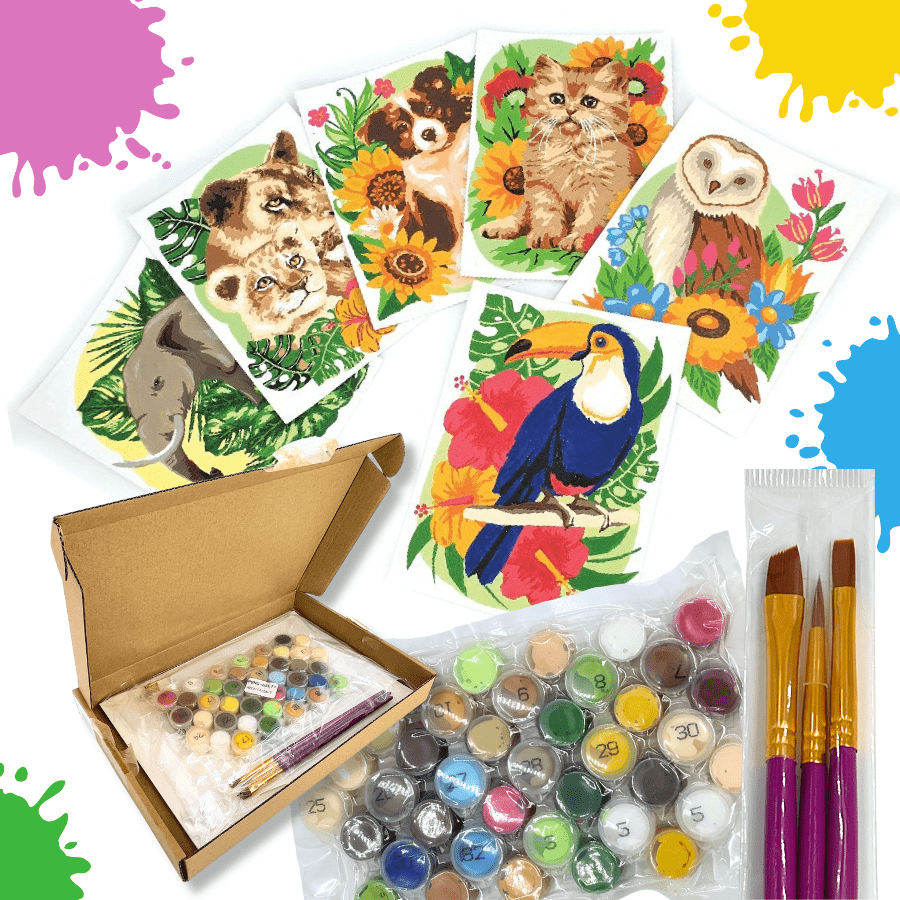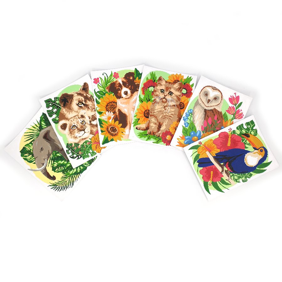 The Paint By Numb3rs Greeting Card Set of 6 Cards from Craft Buddy combines the joy of painting with the heartfelt gesture of sending greeting cards. With this unique set, you can create charming animal works of art and send well-wishes to friends and family. Each Paint By Numb3rs Greeting Card Set includes six beautifully designed cards, featuring illustrations of an owl, lioness, toucan, dog, cat, and elephant. These cards are drawn in outline on white card. All you need to do is match the numbers to the colours, and paint accordingly.
