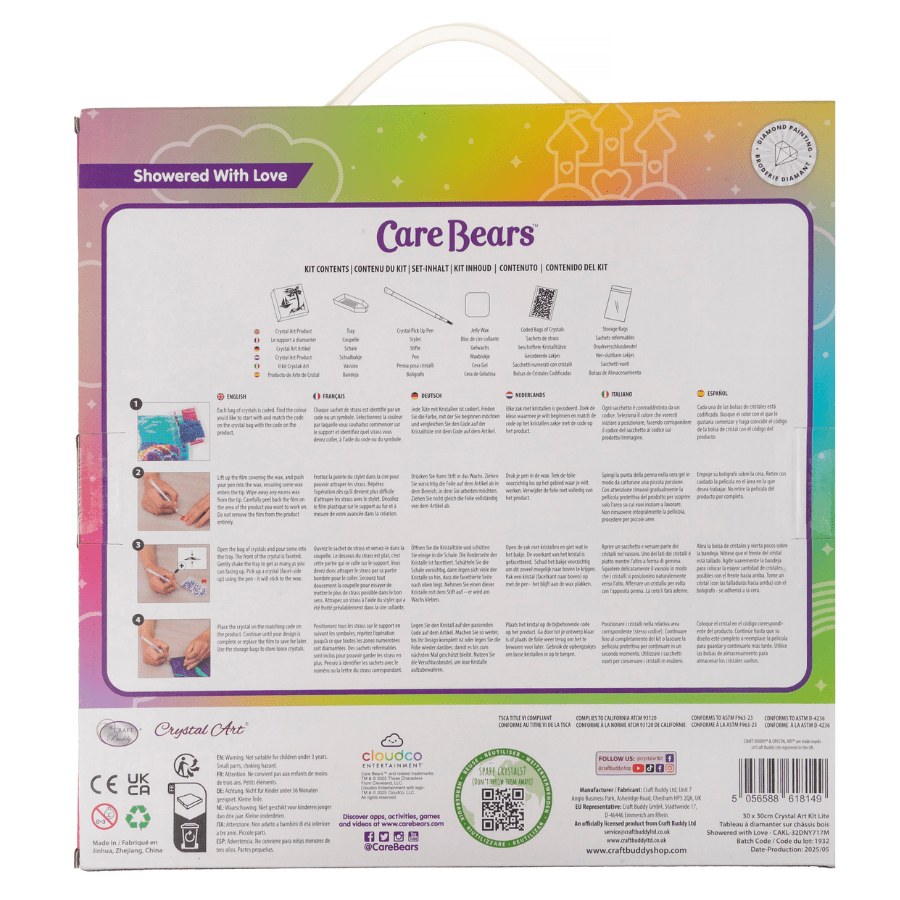 Showered With Love Crystal Art Canvas Kit Care Bears 30x30cm